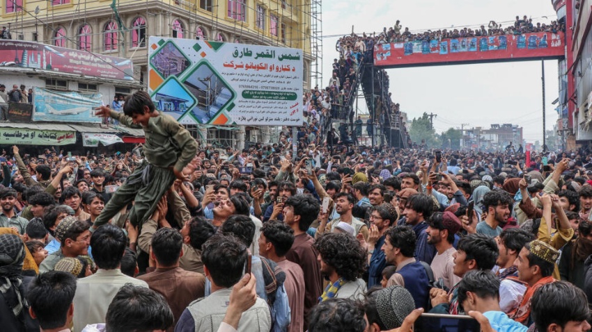 In eastern Khost, firemen and security personnel used water cannons to clear the roads of jubilant fans.